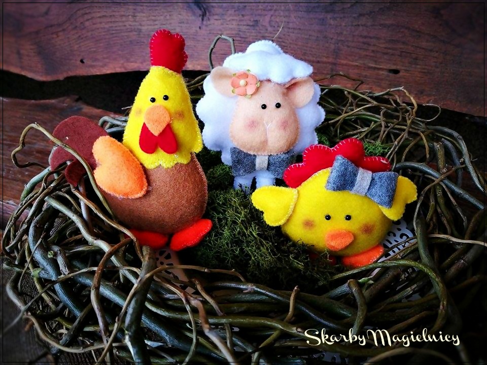 Tym razem powstał istny zwierzyniec. Są koguciki, kurczaczki, jest też owieczka i króliczek. Wszystko to, co możemy włożyć do wielkanocnego koszyczka ;)